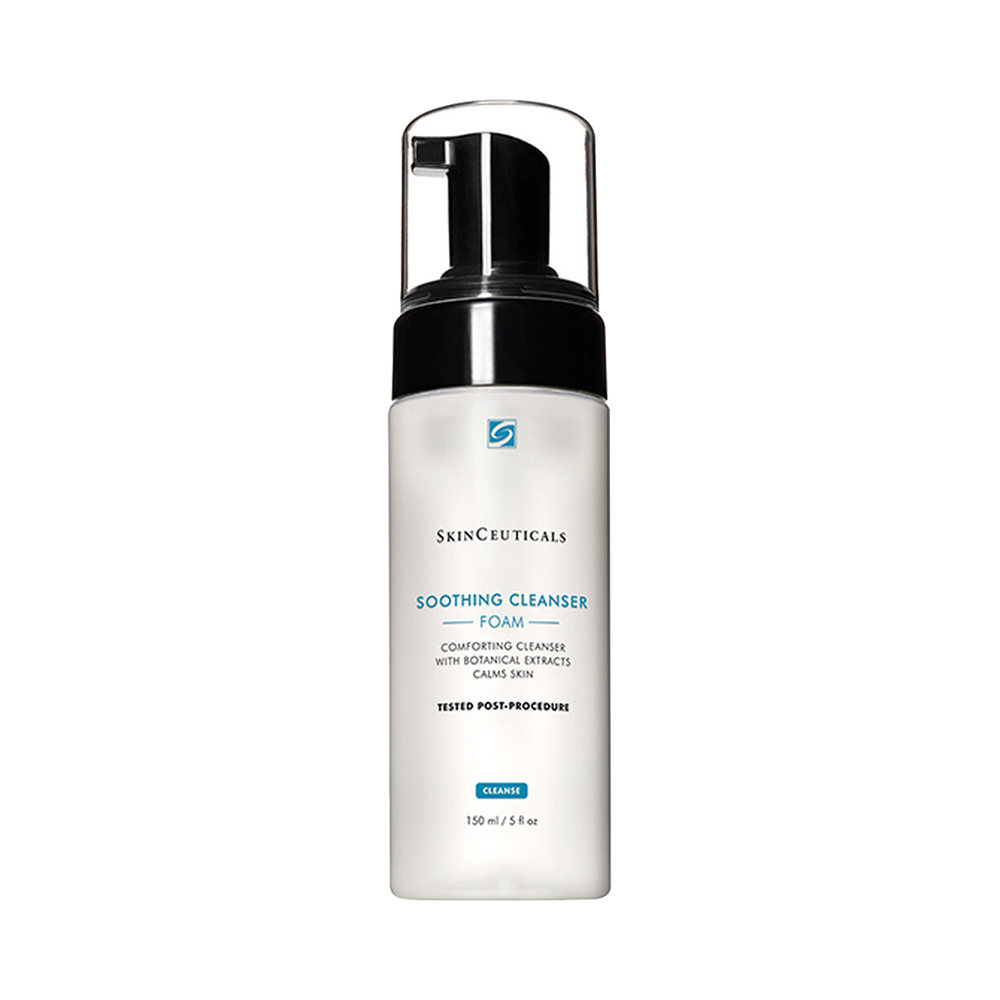 Soothing Cleanser is a potent cleansing foam formulated with a rich amilite surfactant and a 22% concentration combining sorbitol, glycerin, orchid extract, and cucumber extract to gently remove impurities while soothing and comforting sensitive, compromised, or post-procedure skin. This soap free cleanser dispenses a dense cleansing foam that transforms on contact into a comforting emulsion to provide a mild yet effective clean. Tested post-procedure.